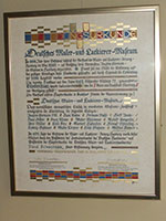 An den Wänden hängt die Gründungsurkunde des Museums, eine Tafel mit den Namen und Logos unserer Hauptsponsoren und Bilder aus der frühen Zeit des Glockenhauses. Eine innere Tür mit Spiegel und geschnitzter Empire-Spiegelrahmung befindet sich in der Rückwand. Davor steht ein ovaler Tisch mit zwei Armlehnstühlen im Louis-seize Stil sowie zwei Innungsfahnen.